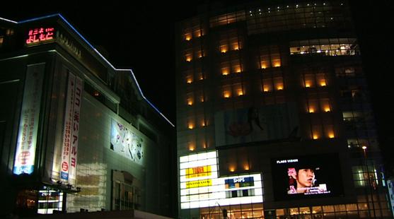 ルミネの横には特大液晶パネルに今日の運勢や、